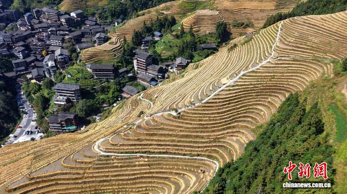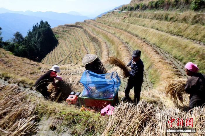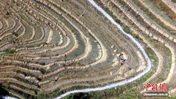 广西龙胜梯田秋收忙