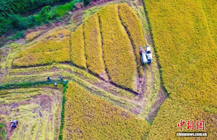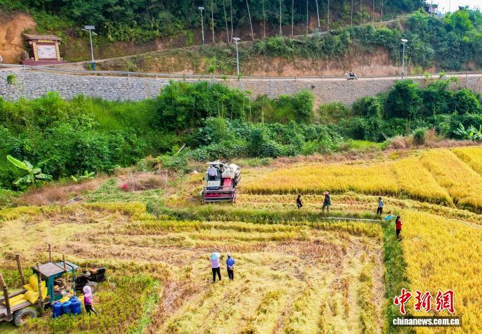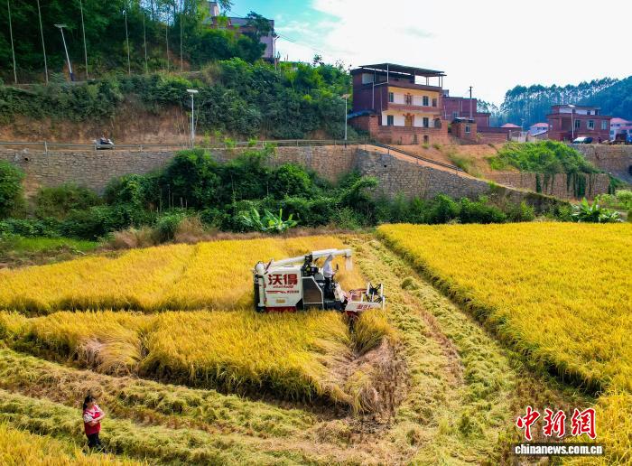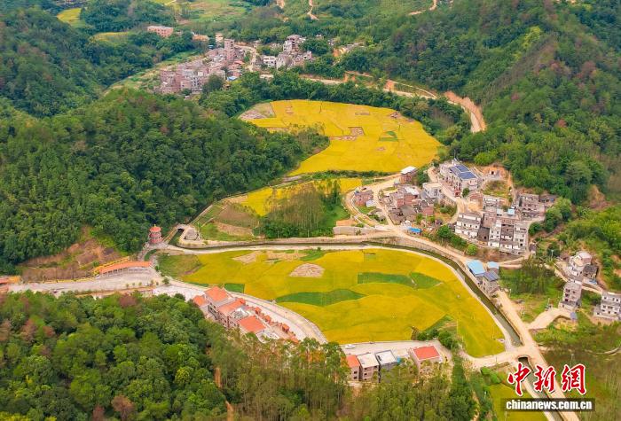 图为航拍广西苍梧县旺甫镇胜坡村的金色稻田。郭庆龙 摄