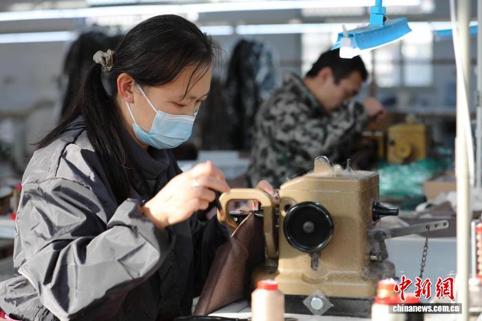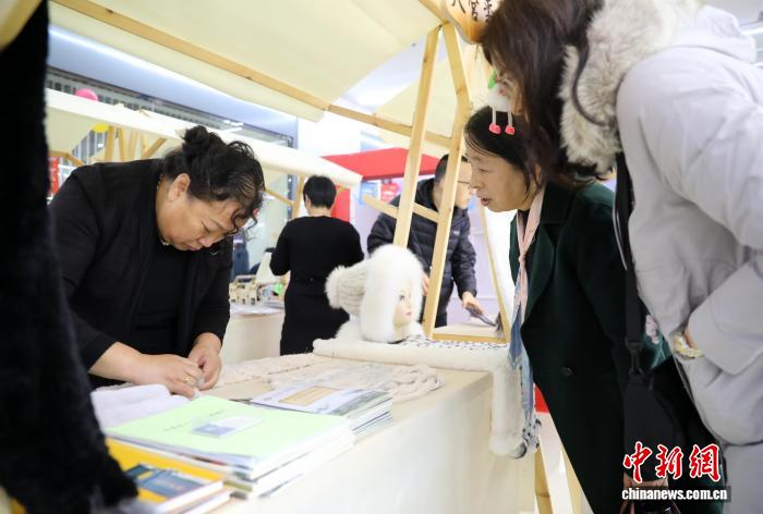 图为展览会的年夜营裘皮文明铺区,工匠为乘客映现裘皮造做武艺。 旧康 摄