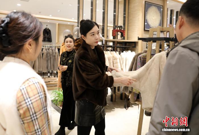 图为中邦主人选择裘皮成品。 旧康 摄