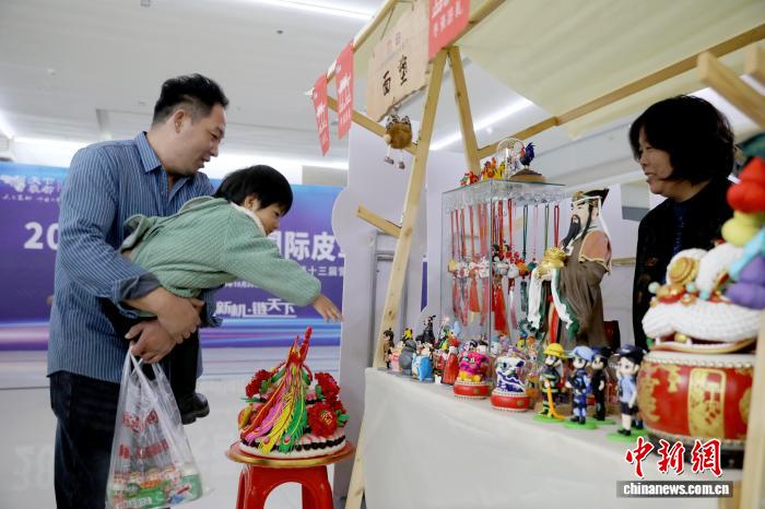 图为展览会上,里塑戏子为乘客展现里塑工艺品。 旧康 摄
